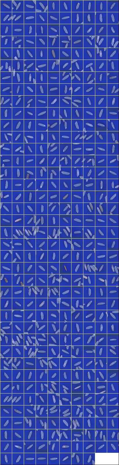 Índices de Qualidade:Peso da Amostra: 71.10 g ( 100.00 %) Discriminação dos defeitos: Inteiros Totais: 70.09 g (98.58 %) Inteiros Vitreos: 61.20 g (86.08 %) Brancura Total 140.28 Brancura Vétrea 138.70 |
