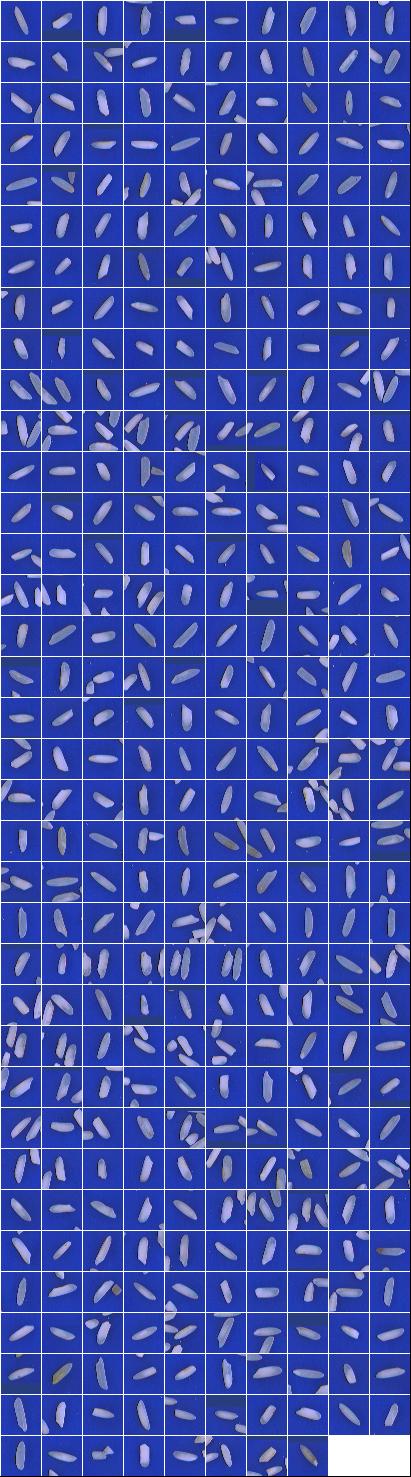 Índices de Qualidade:Peso da Amostra: 100.00 g ( 100.00 %) Discriminação dos defeitos: Inteiros Totais: 82.24 g (82.24 %) Inteiros Vitreos: 14.79 g (14.79 %) Inteiros Perfeitos: 12.92 g (12.92 %) Inteiros Despontados: 1.87 g (1.87 %) Defeito de cor: 9.55 g (9.55 %) Quebrados Vitreos: 1.81 g (1.81 %) Brancura Total 156.19 Brancura Vétrea 141.79 |
