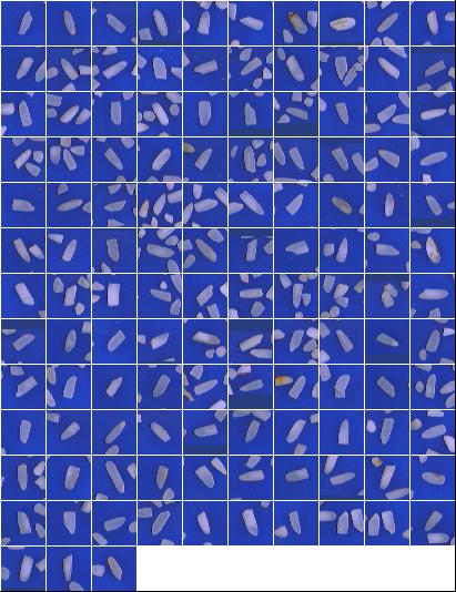 Índices de Qualidade:Peso da Amostra: 100.00 g ( 100.00 %) Discriminação dos defeitos: Inteiros Totais: 10.70 g (10.70 %) *** Inteiros Bons: 8.91 g (8.91 %) ** Int Perfeitos: 0.21 g (0.21 %) ** Int Despontados: 8.70 g (8.70 %) Quebrados Bons: 78.17 g (78.17 %) Brancura Total 142.29 Brancura Vétrea 136.25 |