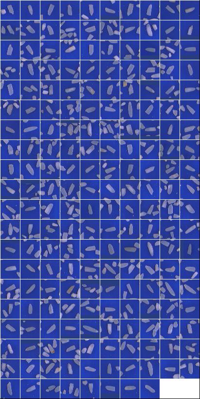 Índices de Qualidade:Peso da Amostra: 100.00 g ( 100.00 %) Discriminação dos defeitos: Inteiros Totais: 12.16 g (12.16 %) *** Inteiros Bons: 7.09 g (7.09 %) ** Int Perfeitos: 0.52 g (0.52 %) ** Int Despontados: 6.57 g (6.57 %) Quebrados Bons: 73.75 g (73.75 %) Brancura Total 134.67 Brancura Vétrea 125.53 |