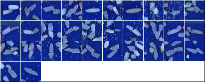 Índices de Qualidade:Peso da Amostra: 100.00 g ( 100.00 %) Discriminação dos defeitos: Inteiros Perfeitos: 1.19 g (1.19 %) Inteiros Despontados: 8.06 g (8.06 %) Brancura Total 143.36 Brancura Vétrea 141.85 |