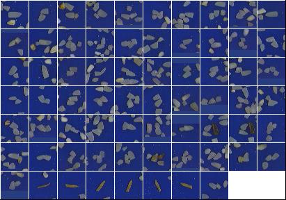 Operador: Rafaela Identificação do Laudo: 202512170729tarde Configuração da classificação: 03 - Branco Elaborado Data e Hora: 17/12/2025 07:29:26 Origem da Entrada: Manfrim Identificação da Amostra: tarde Configuração do Laudo: 05 - Bag Manfrim (Quebrados) Comprimento Médio dos Grãos: 4.977 mm Largura Média dos Grãos: 2.408 mm Razão do Comprimento Médio / Largura Média: 2.067 mm Grãos Descartados para a Lixeira: 38 grãos |