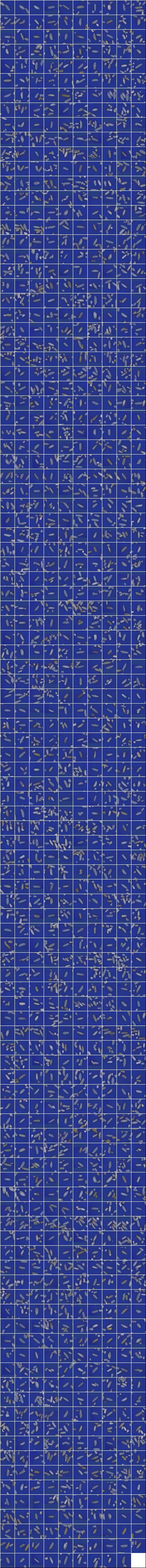 Índices de Qualidade:Peso da Amostra: 100.00 g ( 100.00 %) Discriminação dos defeitos: Inteiros Totais: 39.64 g (39.64 %) Inteiros Vitreos: 16.41 g (16.41 %) Brancura Total 123.24 Brancura Vétrea 118.93 |