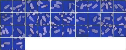 Índices de Qualidade:Peso da Amostra: 100.00 g ( 100.00 %) Discriminação dos defeitos: Inteiros Totais: 2.37 g (2.37 %) *** Inteiros Bons: 1.68 g (1.68 %) ** Int Perfeitos: 0.00 g (0.00 %) ** Int Despontados: 1.68 g (1.68 %) Quebrados Bons: 80.15 g (80.15 %) Brancura Total 141.89 Brancura Vétrea 133.73 |